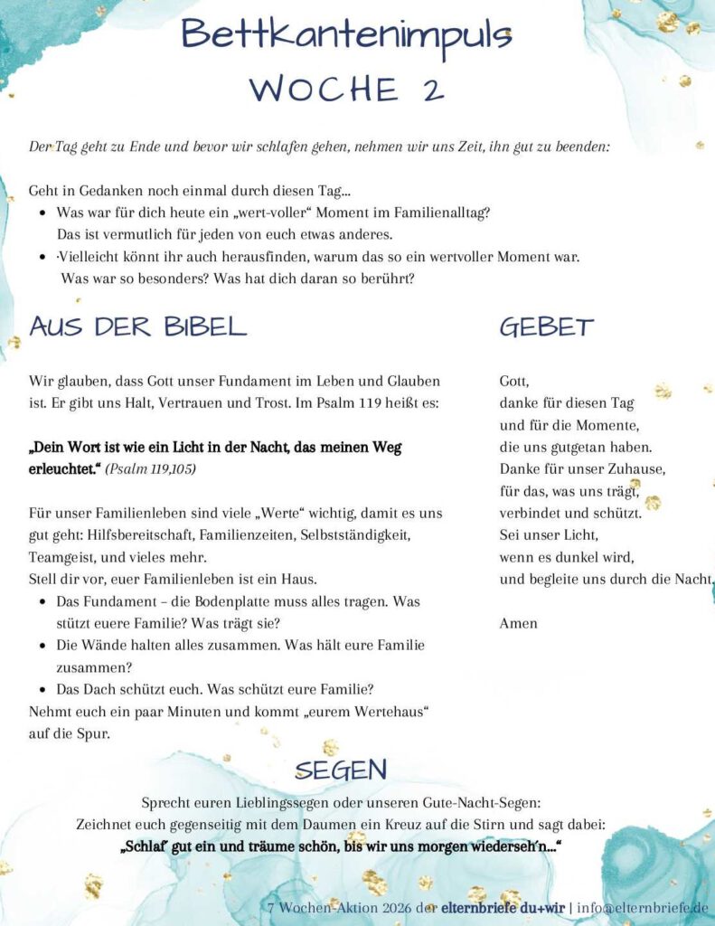 Gebetsimpulse, Gute Worte für den Tag, Raum für persönliche Gedanken und Gebete – das findet Ihr in der Rubrik.
